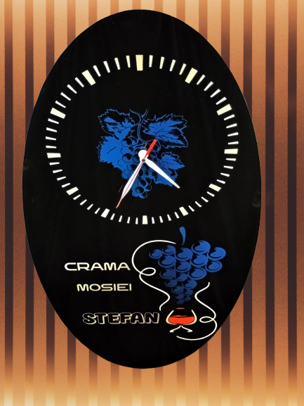 Ceas din sticlă sau oglindă gravată. Piesă unicat, realizată manual.